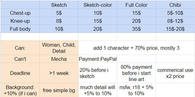 Commission prices & ToS